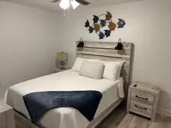 Bedroom 2 offers a queen bed with Smart tv and shares a full bath with bedroom 3.